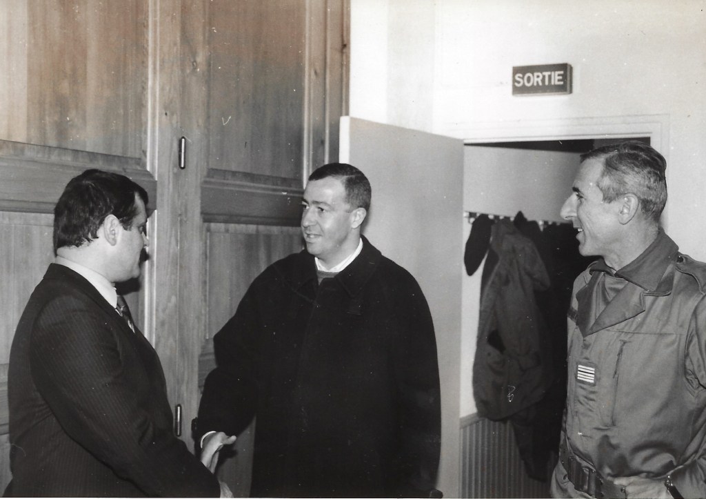 Remise d’un chèque de 1000 F au colonel de Metz, chef de corps du 27e Bataillon de Chasseurs Alpins (BCA) en faveur d’une compagnie engagée au Liban.
