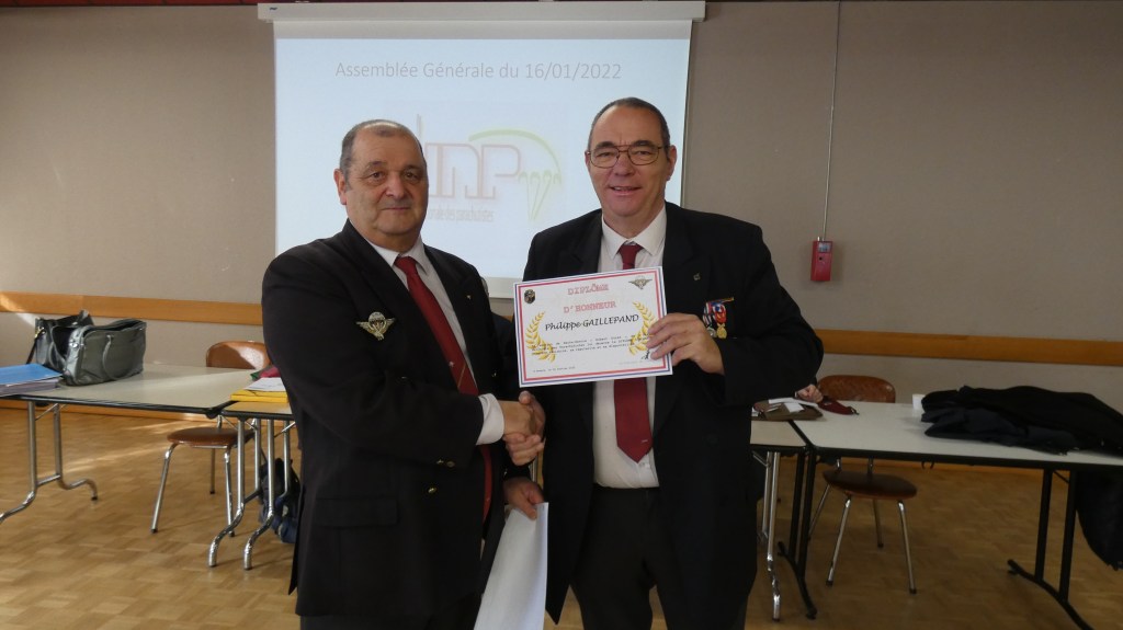 Remise du diplôme d’honneur de la section UNP à Philippe GAILLEPAND