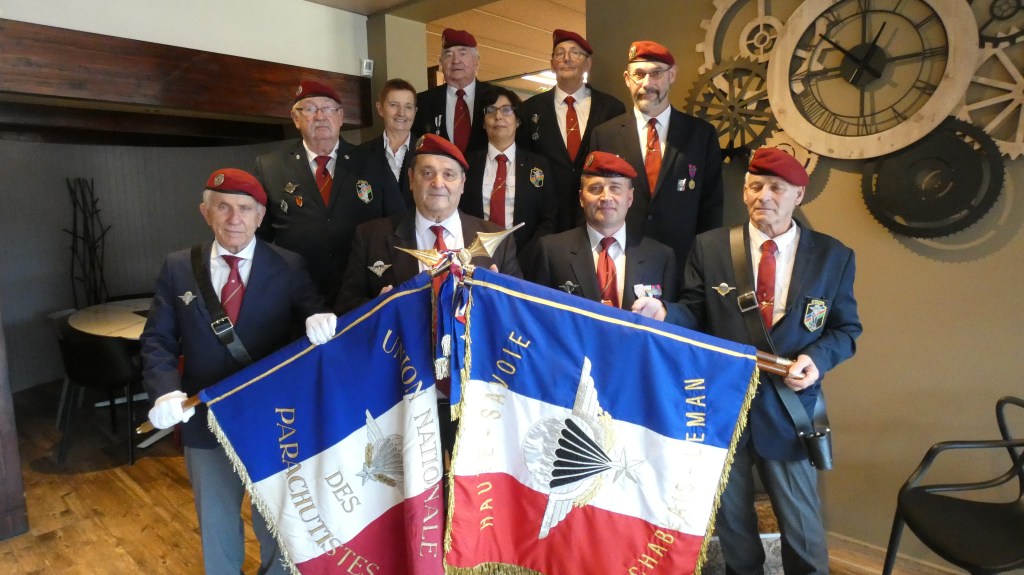 Après l’hommage rendu aux disparus de l’année, les activités annuelles de la section furent énumérées par le secrétaire André COMBEY ; le compte rendu financier fut présenté par le trésorier Alain MONGELLAZ, aidé de son épouse Sylvie, annonçant des finances saines et bien gérées. René NICOLAS et Jacques BALDASSINI, visiteurs des malades et correspondants de l’Entraide Para, rapportèrent leur action nécessaire et magnifique. Jean-Claude SANCHEZ, dans son rapport moral, fit le bilan de ses quarante ans de présidence (1982-2022), rappelant l’organisation par la section de la manifestation du 16 octobre, date anniversaire de dépôt des restes du Soldat Inconnu d’Algérie à Notre-Dame de Lorette, présidée par de nombreuses personnalités du monde militaire ; l’organisation de nombreuses conférences animées par des officiers supérieurs, des journalistes, des aventuriers ; l’organisation de trois Saint Michel régionales, de deux fêtes aériennes, d’un Congrès national de l’UNP à Annecy ; l’organisation de quinze tirs Bastos Lémanique, de huit Raids Commando des Glières ; l’organisation de manifestations publiques pour demander en 1991 la radiation de l’infâme Boudarel de l’éducation nationale, pour soutenir les Harkis contre l’organisation d’une manifestation des porteurs de valises à Evian, pour rendre hommage aux paras assassinés par Mohamed Mehra, pour inaugurer un square Marcel Bigeard à Aix-les-Bains et protéger à plusieurs reprises la plaque menacée de désintégration par une horde de gauchistes. Le président rendit les membres attentifs sur le fait que cette année sera le soixantième anniversaire de la guerre d’Algérie avec une accumulation de regrets, de lamentations, d’excuses sur les actions de l’armée française, édulcorant ou même ignorant les crimes horribles commis par le FLN. Il rappela que pour nous, il sera exclu de participer aux cérémonies du 19 mars, date honnie qui ne représente nullement la fin des tragédies.
