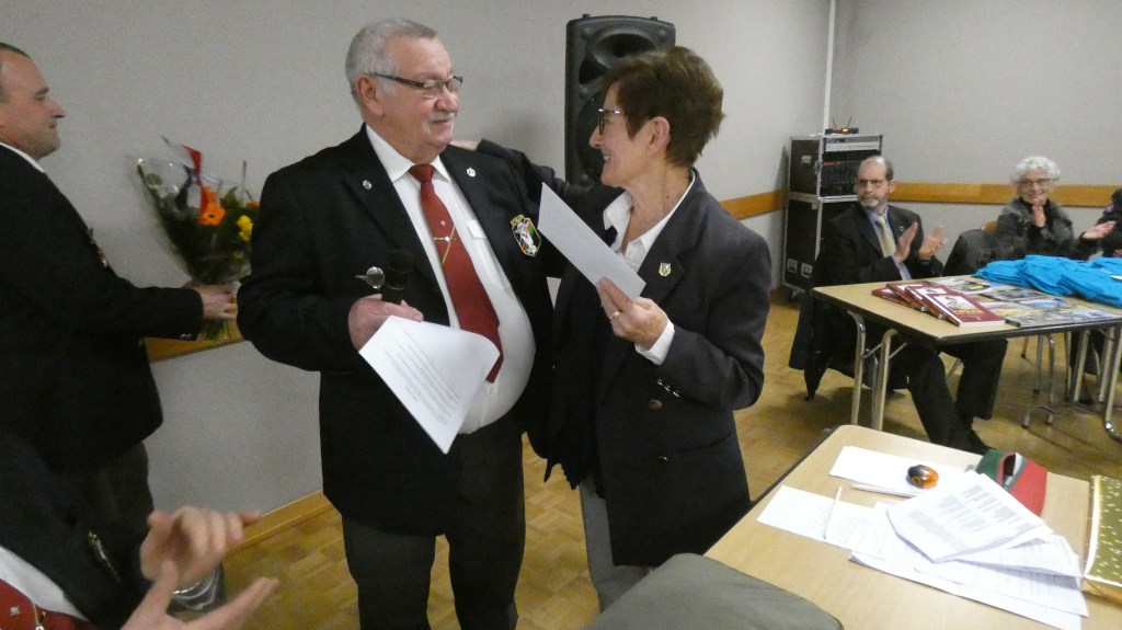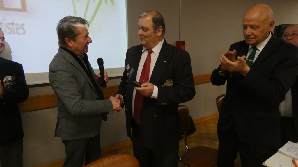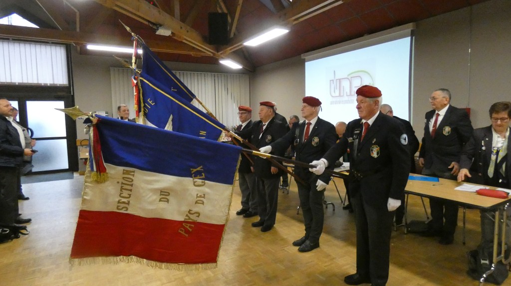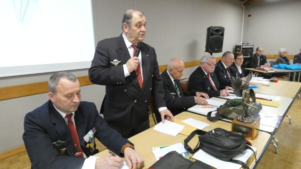Après 41 ans de présidence de la section, Jean-Claude Sanchez a passé la main lors de la dernière assemblée générale de la section, en présence du Général Piquemal, président national de 2004 à 2014, de Marcel Bernard, délégué régional, du Général Wabinski et de Michel Vial, rédacteur au magazine Raid. L’association des paras allemands de Calw avec qui la section est jumelée depuis 2006, était représentée par son ancien président Jochen Albrecht et par Peter Pferdekämper. Une délégation de la section de Gex avec son président Roland Levrat avait aussi tenu à être présente. L’assemblée générale débuta par la passation de notre drapeau des mains de Michel Ruffier Monet, notre porte-drapeau depuis de très nombreuses années, qui renonce à son mandat pour raisons de santé, aux mains d’André Menin, porte-drapeau titulaire et de Jacques Baldassini, porte-drapeau suppléant.