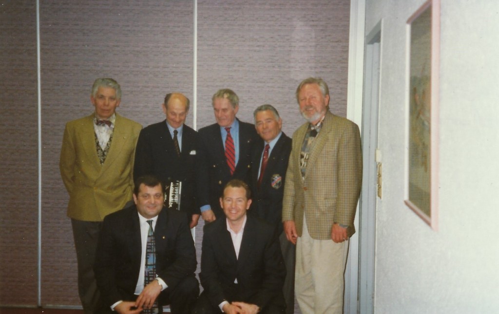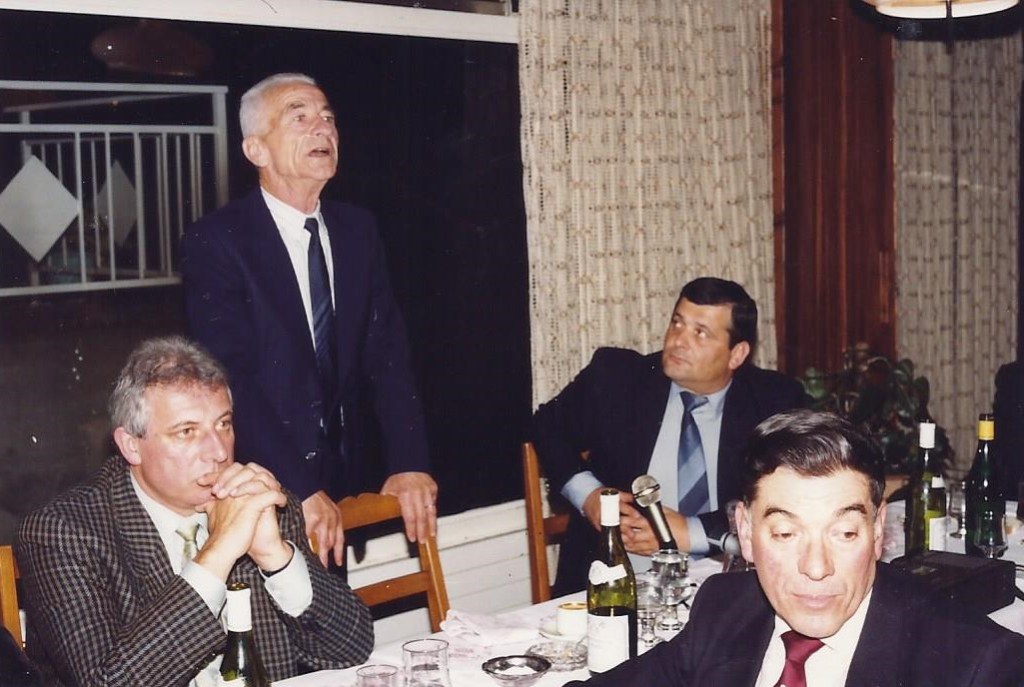 De gauche à droite, Georges Cailler, Roland Tolaini, Gérald Perret, Jacques Sache, Lucien Bonelli (qui était alors président de la section), René Pagliero, Jean-Claude Sanchez, Jean Mouchet, le colonel Antoine Argoud (en pull rouge).