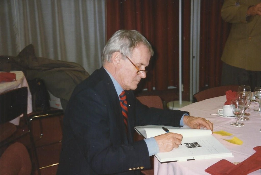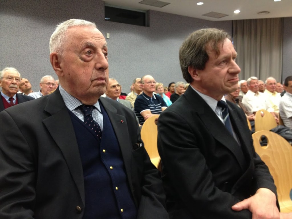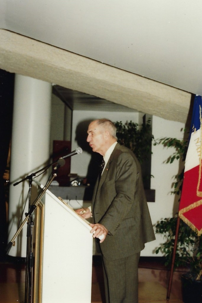 Général Marcel BIGEARD, à Annecy, le 16 novembre 1990, collant encore à l’actualité, développe le thème « La France dans le monde ce 16 novembre » et parle de son expérience personnelle depuis ses combats en Ariège, pendant la 2e Guerre mondiale, aux durs combats d’Indochine, notamment à Dien-Bien-Phu, et enfin en Algérie face aux fells.