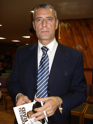 Commissaire divisionnaire Amaury de HAUTECLOCQUE, petit neveu du Maréchal Leclerc, ancien de la Brigade des Stupéfiants, puis patron de la section antiterroriste, actuellement patron du RAID et de la Force d’Intervention de la Police Nationale (FIPN), parle de la sécurité nationale et présente le RAID et la Force d’Intervention de la Police Nationale (FIPN), le 8 avril 2010 à Annecy.