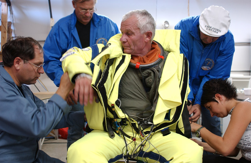 Michel FOURNIER, le « para de l’extrême » explique, ce 19 avril à Annecy, son projet de faire le Grand Saut, « the Big Jump », depuis la stratosphère, d’une altitude de 40’000 mètres, à partir d’un ballon à hélium, développant son intérêt scientifique, les difficultés rencontrées, l’entraînement, le coût, le matériel, les sponsors.