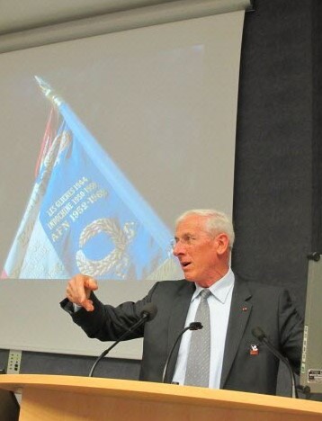 Général Jean-René BACHELET, ancien chef de corps du 27e Bataillon de chasseurs alpins (27e BCA). Il exerça en tant que général le commandement du secteur de Sarajevo dans le cadre de la Forpronu en 1995, au paroxysme de la crise. Général d’armée, il occupa les fonctions d’Inspecteur général des armées jusqu’en 2004. Il aborda le 28 octobre 2004 le thème : L’Exercice du métier des armes dans l’armée de terre, fondements et principes .