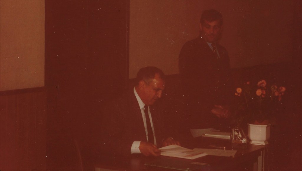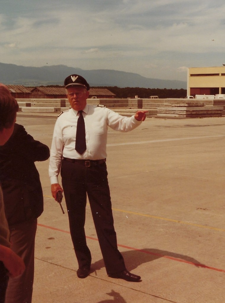 Colonel Roland TROYON, colonel de l’armée suisse, Commandant du Service de Sécurité de l’Aéroport de Genève. Le 20 juin 1982 à l’aéroport de Genève, il présente son service à la section UNP de Haute Savoie.