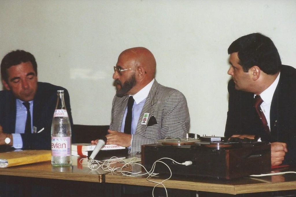 Jean LARTEGUY, grand reporter, écrivain, auteur de livres qui ont largement contribué à la légende des paras (les Centurions, les Prétoriens, etc.), spécialiste du Moyen-Orient (Liban, Syrie, Iran), aborde ce 17 juin 1988 à Annecy, le problème de « La poussée islamique au Moyen-Orient. ».