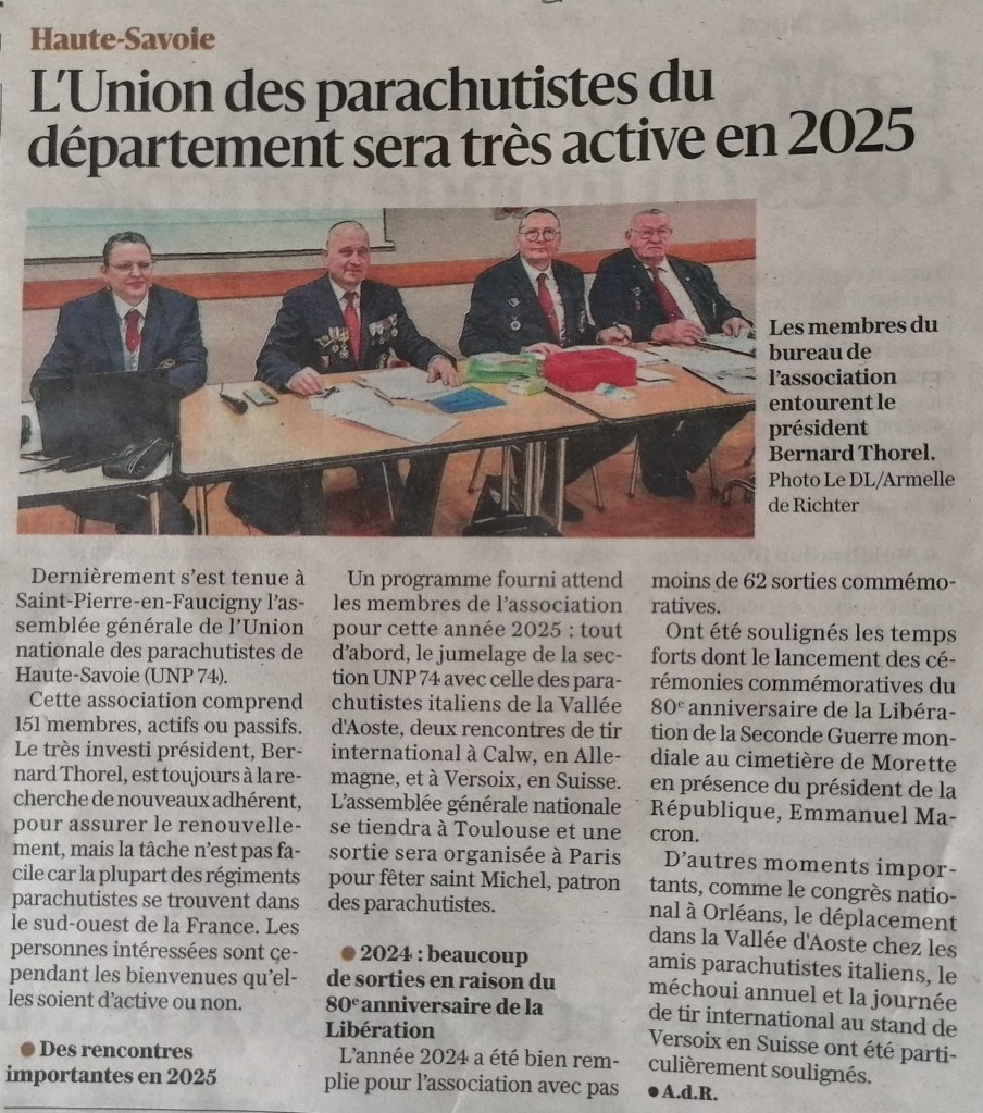 La section de Haute-Savoie est jumelée avec la Traditionsgemeinschaft Luftlandebrigade 25 Fallschirmjäger – Kameradschaft Calw depuis le 03 septembre 2006 et avec l’Association des anciens parachutistes italiens de la vallée d’Aoste-Verrès depuis le 06 juillet 2025.