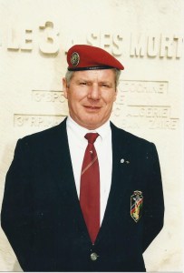 Au début des années 2000, Michel adhéra à l’Amicale du 17e RGP (son régiment) et à notre association, l’Union Nationale des Parachutistes. Dès 2003, il remplaça Robert LAIB, notre porte-drapeau, très malade. A la mort de Robert, en 2004, c’est Michel qui assura officiellement cette fonction honorifique. Tout le long de ces années, il portait notre drapeau à toutes les cérémonies, par n’importe quel temps, sans jamais se plaindre et pourtant certaines fois son pied accidenté – écrasement lors d’un accident de travail – le faisait horriblement souffrir. Michel avait deux qualités essentielles de nos jours, c’était un homme d’une grande franchise et un homme de parole. Quand il s’était engagé à faire quelque chose, il n’était pas besoin de vérifier ; tout était réalisé parfaitement. Il faut aussi signaler que sa fidèle épouse, Arlette, l’a appuyé, l’a secondé tout le long de leurs 64 ans de mariage.
