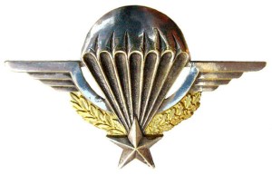La Direction des Troupes Aéroportées créa le 1erjuin 1946 le brevet parachutiste militaire. Son explication contient une définition complète de l’idéal du parachutiste : « Le parachute te porte, les ailes du grand Saint-Michel te supportent, l’étoile te guide, les lauriers te rappellent la gloire des anciens, les feuilles de chêne sont la force des parachutistes ». Mais la mort te guette, représentée par le noir entre les suspentes « C’est le symbole auquel le para tient le plus » ; aucun d’entre eux ne pouvant oublier son émotion et sa fierté lors de la prise d’armes qui clôture tout stage. Ce Brevet, communément appelé « plaque à vélo » est aussi le lien puissant qui réunit les anciens et les jeunes.