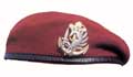 Le 10e Bataillon Parachutiste de Chasseurs à Pied (10e BPCP) a le béret noir-chasseur ; la Légion adopte le béret vert et les paras coloniaux, héritiers des traditions SAS, portent le béret rouge. Le 1er mars 1951, le Général DE LATTRE DE TASSIGNY décide que toutes les unités paras d’Indochine porteront le béret amarante par souci d’unification. Seuls les bérets verts de la Légion subsistent, ainsi que le béret blanc à rubans vert et rouge des CIPLE.