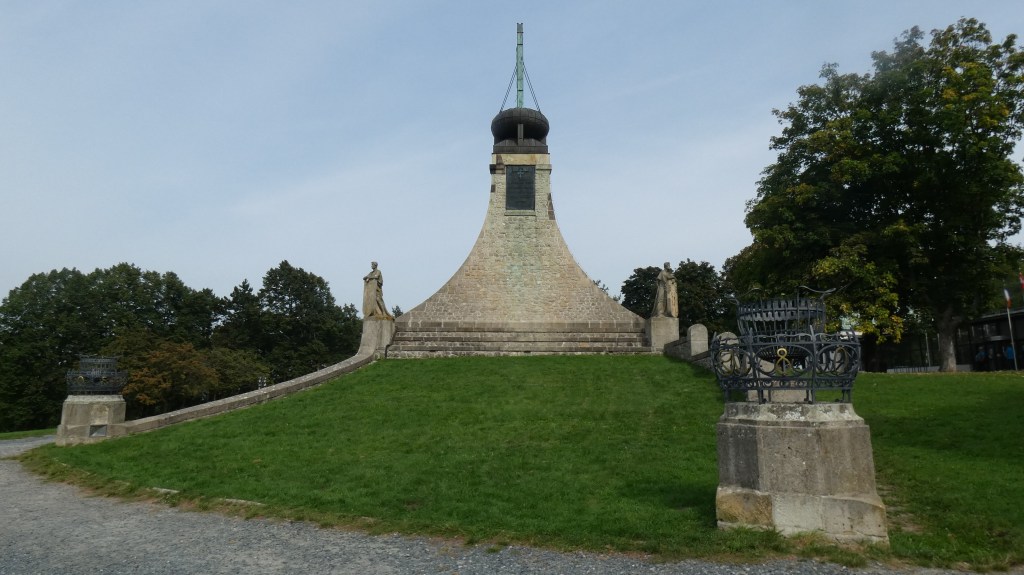 Nous avons revêtu le polo bleu de la section et coiffé notre béret rouge pour déposer une gerbe au Monument de la Paix, en mémoire des soldats français mais aussi des Russes et des Autrichiens. Ce monument de forme pyramidale quadrangulaire avec une hauteur de 26 mètres a été construit sur un des lieux décisifs de la bataille ! Quatre splendides statues qui symbolisent les héros des armées française, autrichienne, russe et du peuple morave sont placées aux quatre coins du monument.