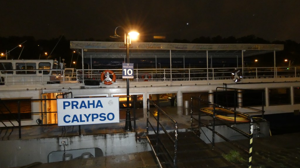 En fin d’après-midi nous nous rendons au Pivovarsky dûm, établissement spécialisé dans la bière, pour y rencontrer deux paras tchèques dont un général, membre de l’association de Prague des anciens paras. Nous nous présentons et échangeons des idées traduites par Hana . Peut-être à l’avenir y aurait-il des possibilités de nous revoir et de réaliser des choses ensemble. En tout cas, l’ambiance est conviviale et fraternelle. Après être rentrés à l’hôtel pour nous changer, nous partons pour un dîner-croisière sur le Calypso, bateau couvert sur la rivière Vltava.